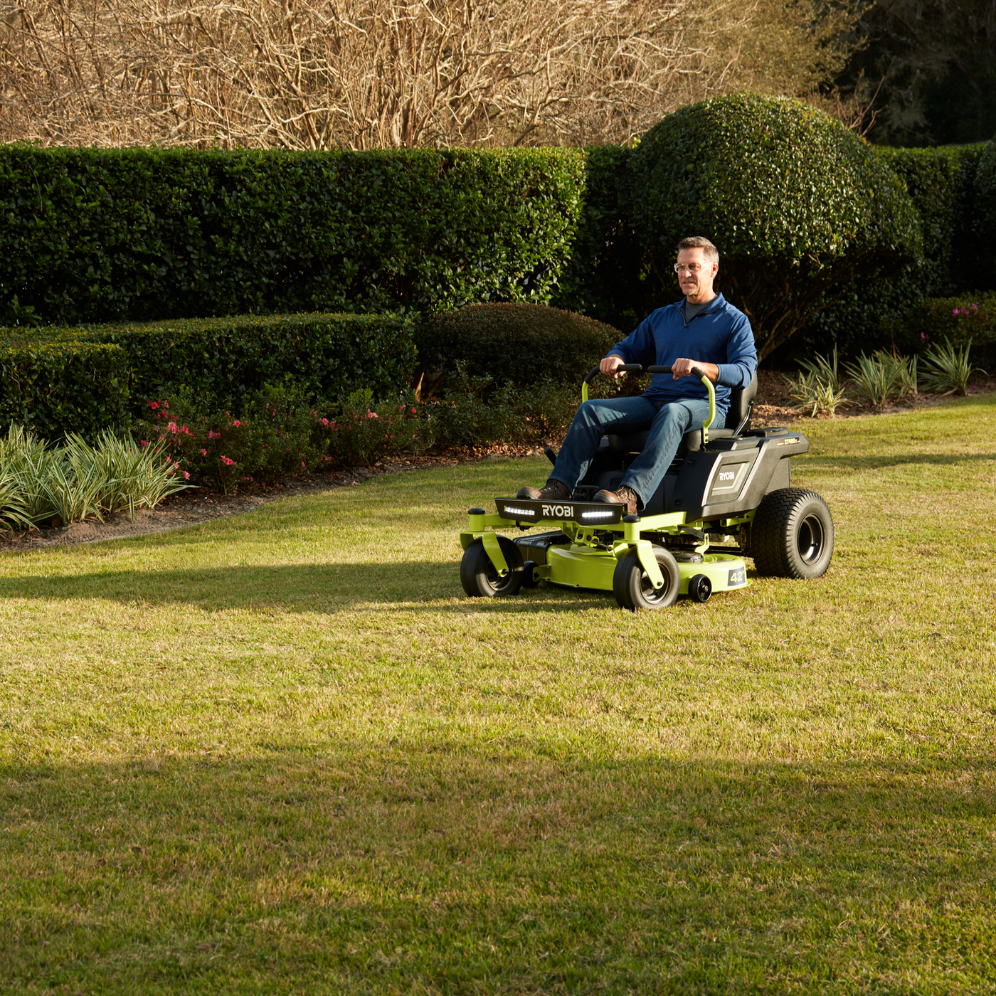 Ryobi 48V 42” ZT Ride-On Mower Bonus Line Trimmer & Cover Kit