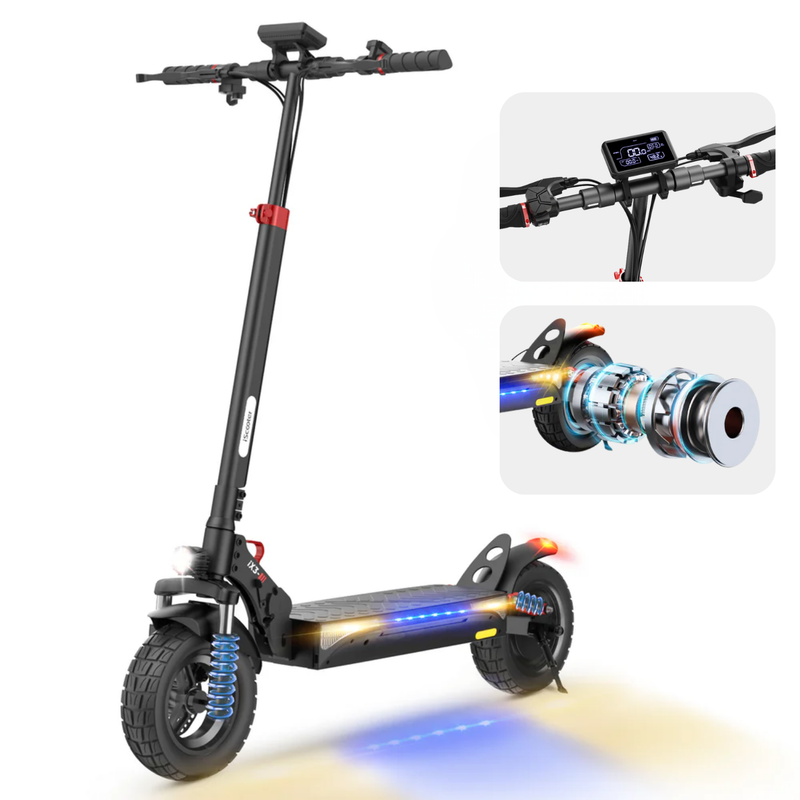 All‑Terrain Capability: Large off‑road tyres and suspension absorb bumps and maintain traction on gravel, grass, and rough paths.